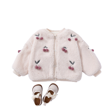 ガールズウェア新着秋冬プリンセスベビーガールフリース裏地ヒートテック厚みのあるトップスウエスタンチェリー漫画ミックス服